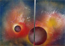 Die Erkenntnis, dass sich ein kosmischer Bezug quer durch das ganze Werk von Hug Mundinger zieht, hat mich in der Tat sehr berührt. Aus ihr ist letztlich die Idee für das vorliegende Buch (nicht im Handel erhältlich) erwachsen. Hat man erst das geistige Auge auf diesen kosmischen Bezug hingelenkt, dann erkennt man in den Werken die vielen Gebilde und Strukturen unseres modernen naturwissenschaftlichen Weltbildes wieder: Sonnen, Planeten, Galaxien, Supernovae, lebendige Wesen. Und nicht nur die Strukturen im Raum der kosmischen Tiefe sind vertreten, sondern auch der zeitliche Aspekt der kosmischen Evolution kommt in seinem Werk zum Ausdruck. Da gibt es Bilder, die auf die Geburt unseres Alls in Form eines Urknalls hinweisen, andere verweisen auf Leben und Tod der Sterne, wiederum andere auf die Entstehung großräumiger Strukturen wie Galaxien. Letztlich weisen sie auf die zukünftige Entwicklung des Alls hin, auf sein Ende und seinen Tod, der womöglich nichts anderes darstellt als nur einen Neubeginn des kosmischen Geschehens.