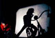Bei den ersten Versuchen arbeitete er mit zum Teil überlebensgroßen Figuren. Die notwendigen Schablonen stellte er durch Projizieren einer Person her. Durch Anstrahlen mit einer Lichtquelle wurde ihr Schatten auf ein Papier an der Wand hinter ihr geworfen. Die Umrisse des Schattens zeichnete mein Vater mit einem Stift nach. Danach schnitt er das skizzierte Modell aus. Durch Verschieben der Lichtquelle konnte er auch bewusst Verzerrungen der abgebildeten Figur erzielen. Die Schablonen legte er nun auf den Malgrund (meist Holz oder Karton) und besprühte sie mit Farbe aus Spraydosen. Die so entstandenen Umrisse bearbeitete er weiter. Häufiges Motiv waren Personen mit Fahrrad. (Auf den Bildern aus dem Atelier bin ich als Modell zu sehen.)