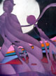 Die Bilder erreichten nun größere Formate und scheinen unendlich erweiterbar zu sein. So wie es im Weltall kein Oben und Unten gibt, so ist auch bei den großen, mehrteiligen Bildern (mein Vater konnte wegen der fehlenden Hände und der dadurch begrenzten Reichweite nur einzelne Bilder bis zu einer bestimmten Größe bearbeiten) weder ein Oben und Unten noch irgendeine Begrenzung zu erkennen.